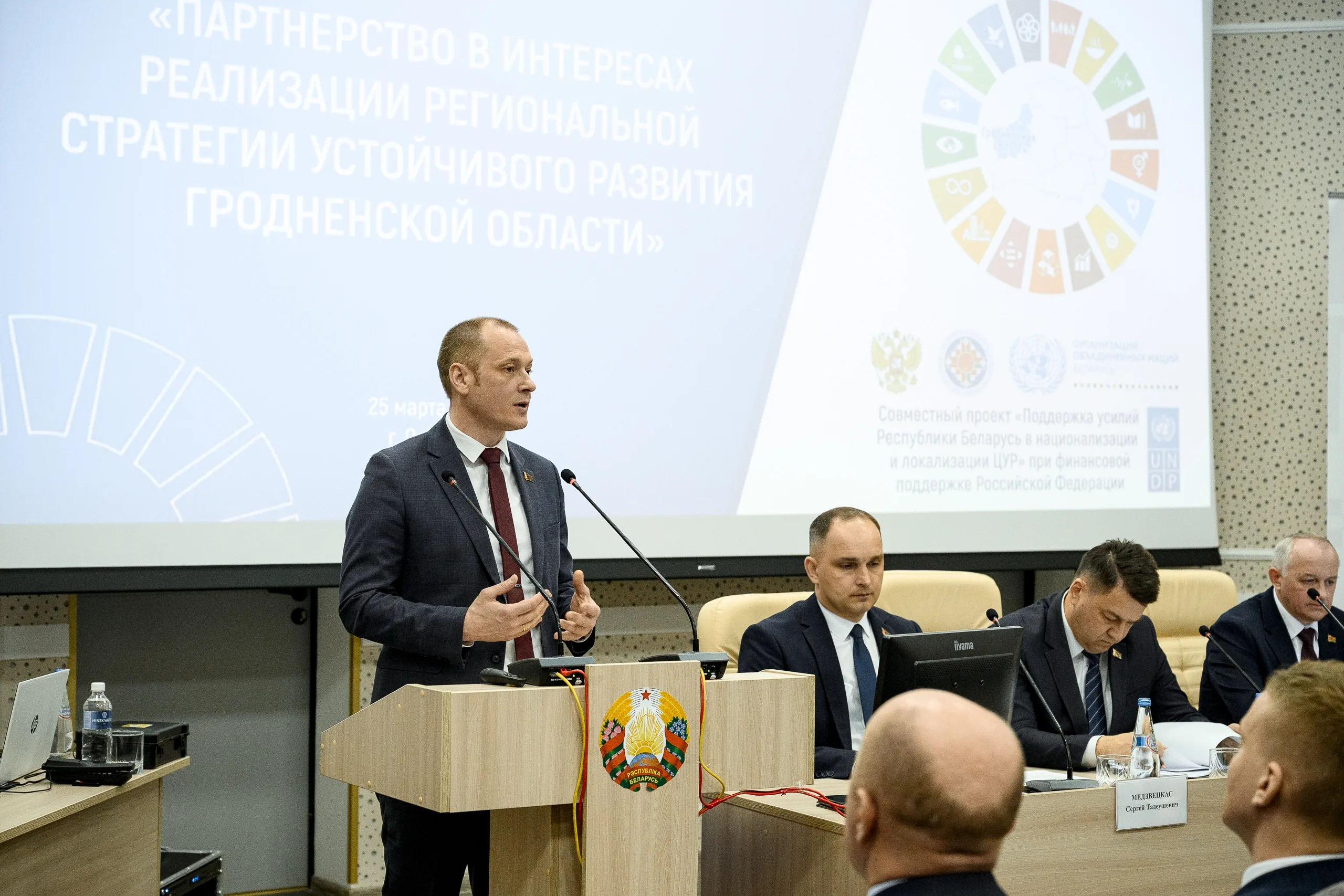 Круглый стол «Партнерство в интересах реализации региональной стратегии устойчивого развития Гродненской области» организован Гродненским областным исполнительным комитетом при поддержке ПРООН в рамках проекта международной технической помощи «Поддержка усилий Республики Беларусь в национализации и локализации Целей устойчивого развития», финансируемого Правительством Российской Федерацией.
